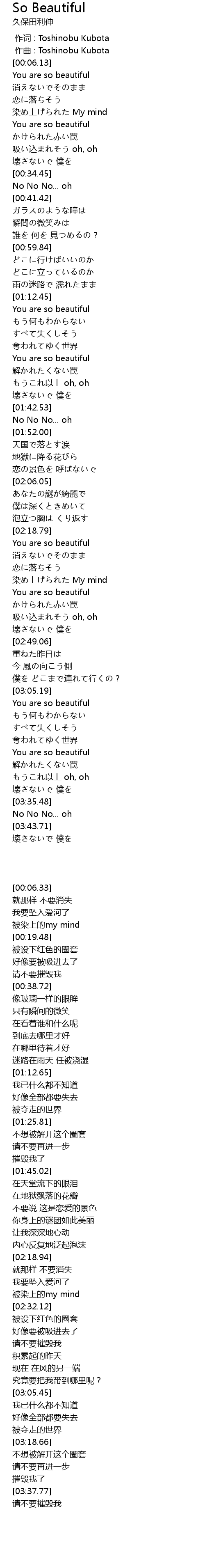| [00:00.000] | 作词 : Toshinobu Kubota |