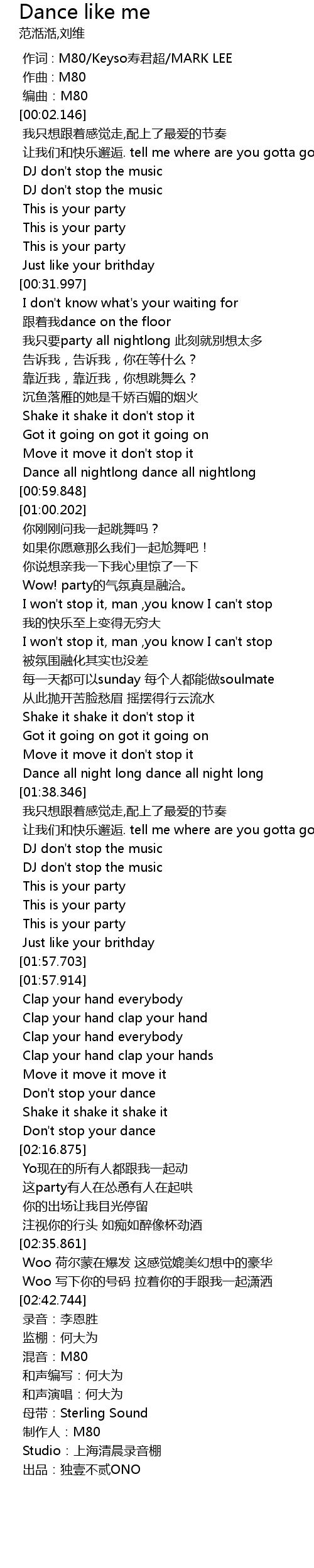 | [00:33.714] | 跟着我dance on the floor |