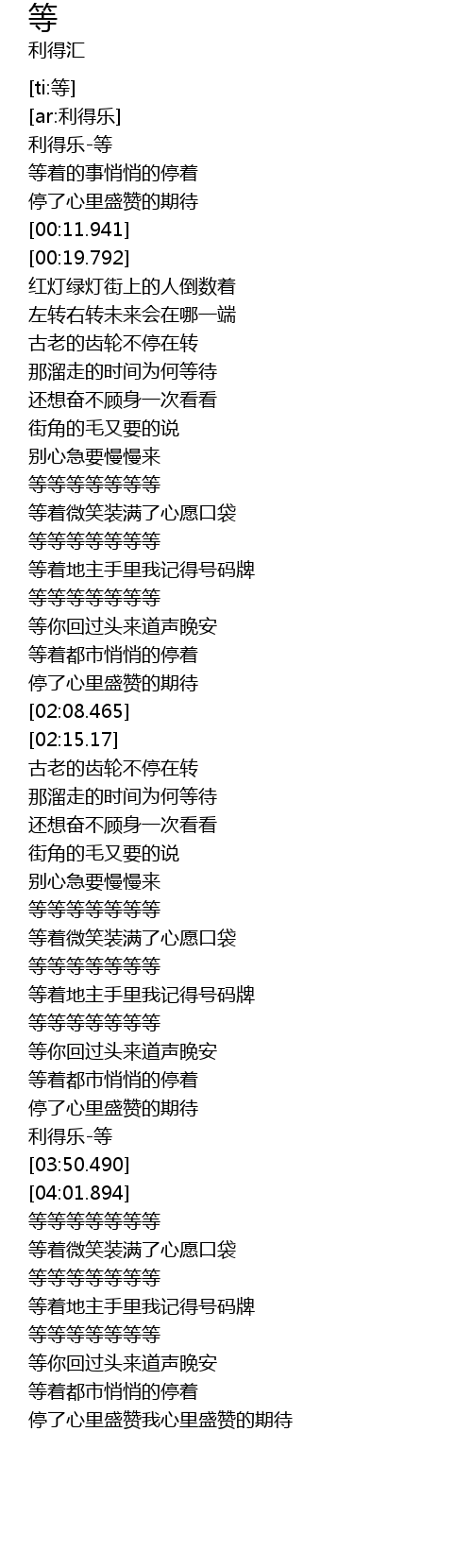 | [00:00.177] | 利得乐-等 |