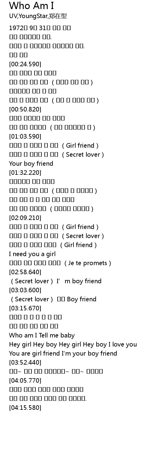 | [03:36.930] | Who am I Tell me baby |