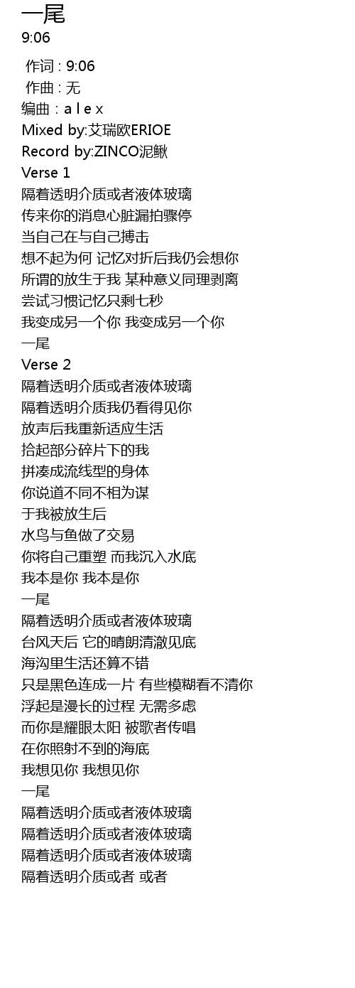 | [00:00.000] | 作词 : 9:06 |