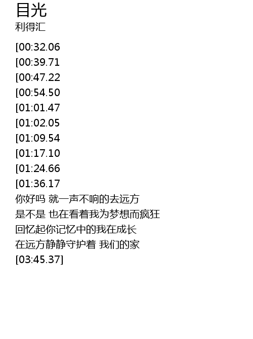 | [02:58.45][01:24.66] | 和多久没见过的 和谒目光 |