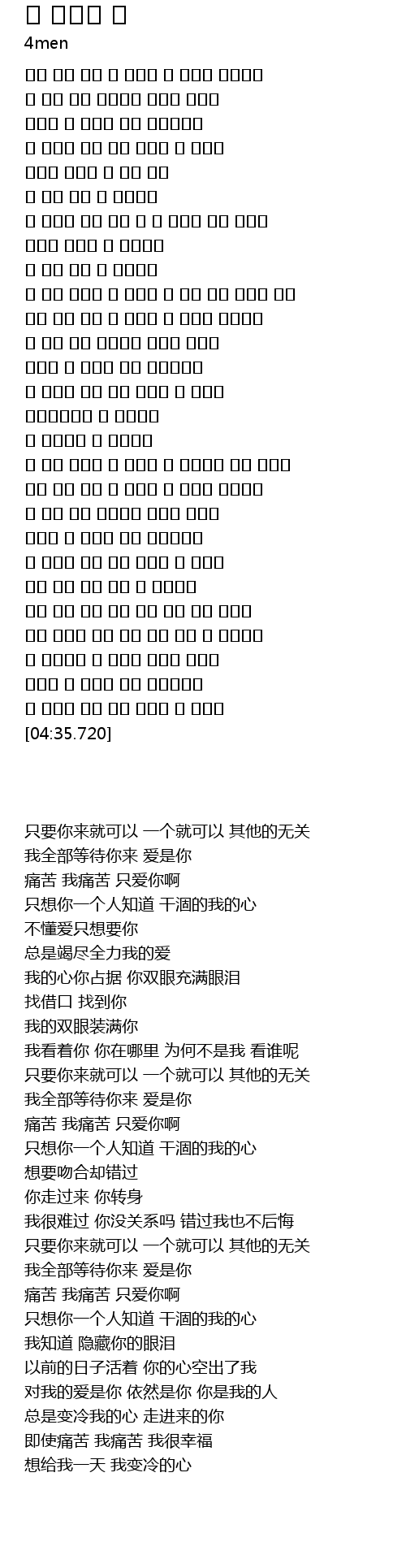 너만 내게 오면 돼 하나면 돼 다른건 상관없어 |