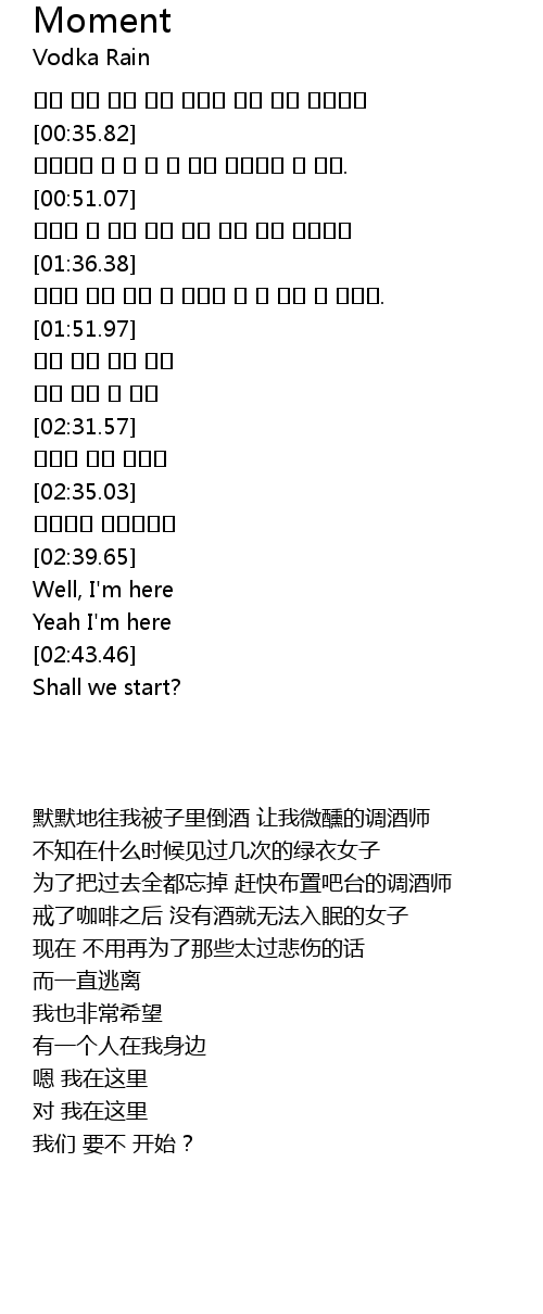 | [01:25.00] | 지나간 걸 모두 잊기 위해 빠를 차린 바텐더와 |
