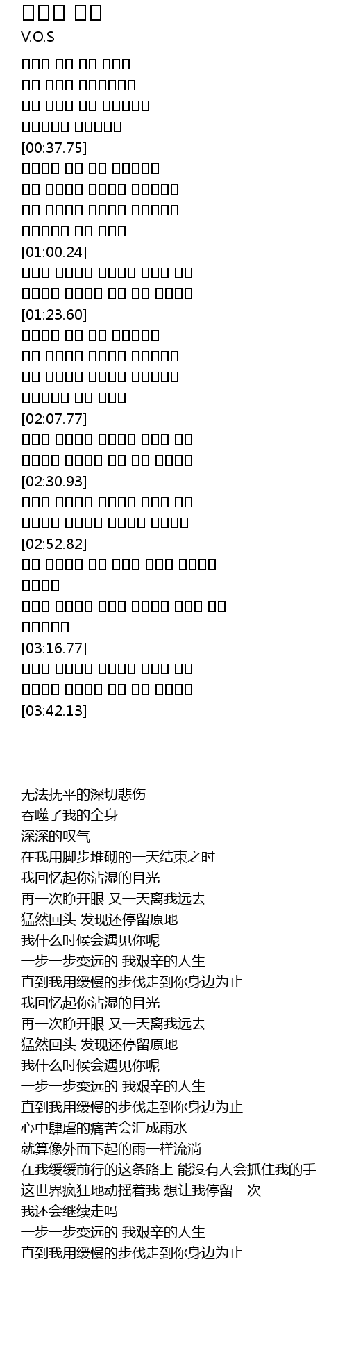 | [02:53.74] | 느린 걸음으로 가는 이길에 내손을 잡을사람 하나없고 |