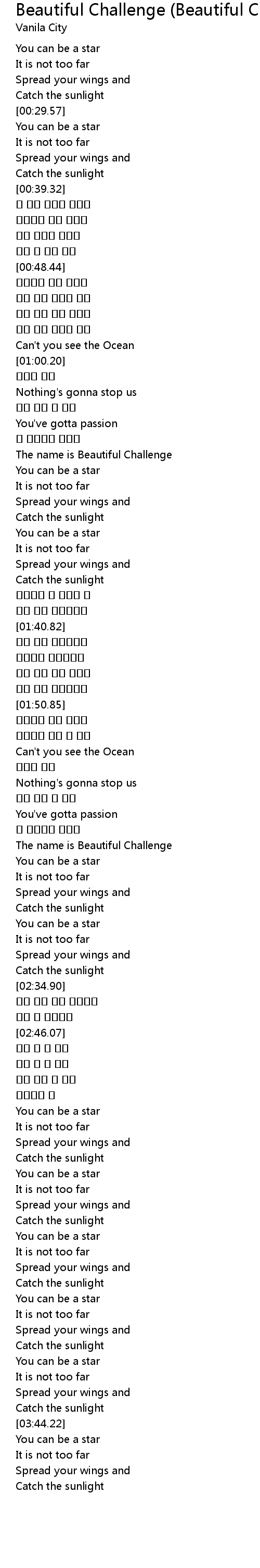 | [01:13.41] | The name is Beautiful Challenge |