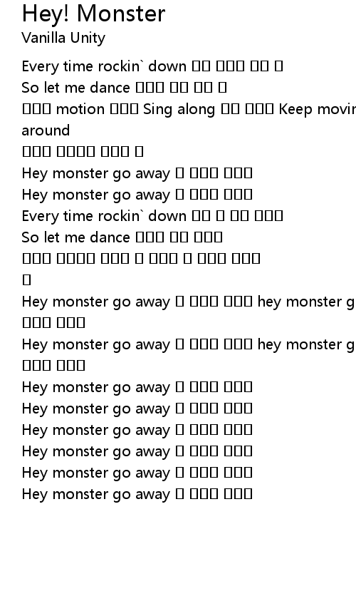 | [02:04.08] | Hey monster go away 이 순간은 영원해 hey monster go away 이 시간이 소중해 |