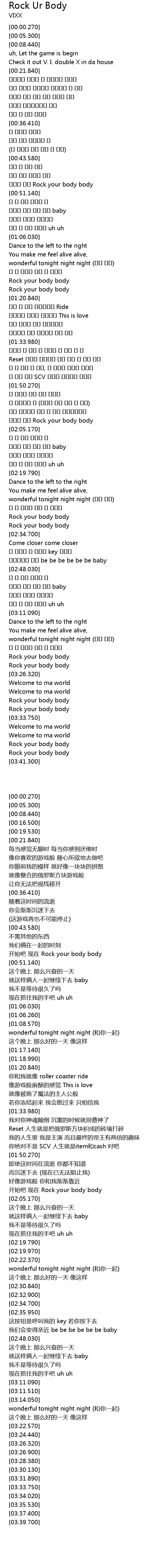 | [00:48.370] | 시작해 이제 Rock your body body |