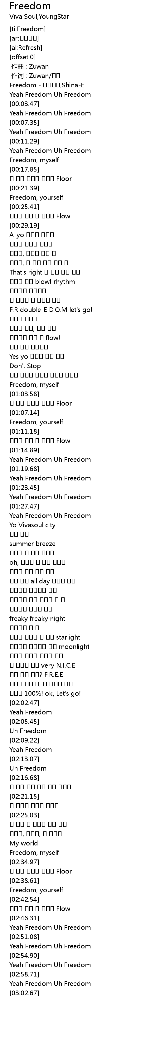 | [00:00.11] | Freedom - 비바소울,Shina-E |