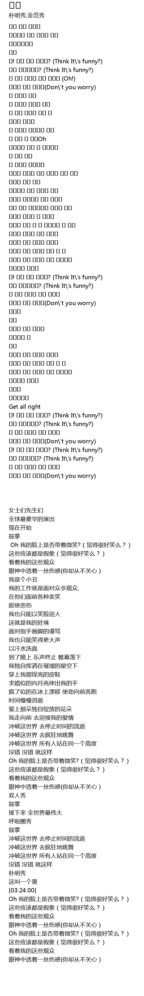 | [02:01.23] | 오! 내가 웃고 있나요? (Think It\'s funny?) |