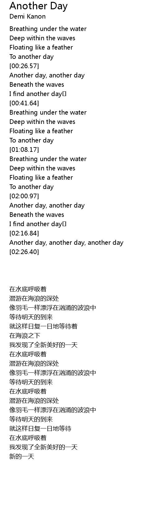 | [02:18.51] | Another day, another day, another day |