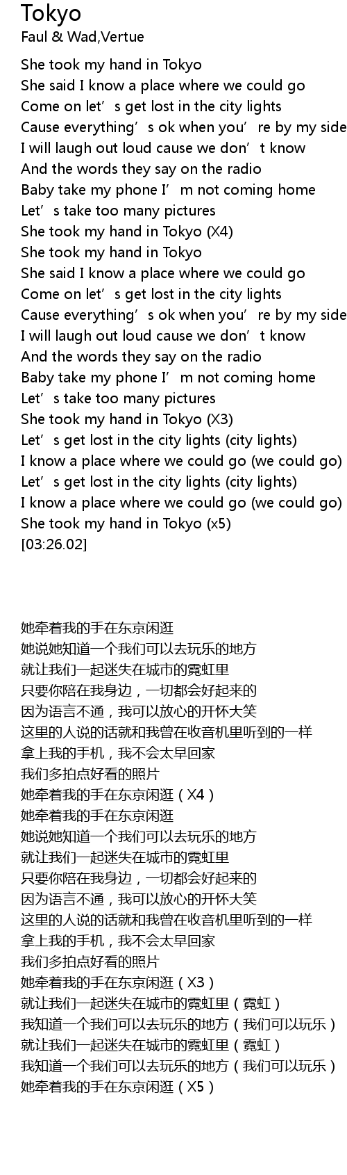 | [02:49.39] | She took my hand in Tokyo x5 |