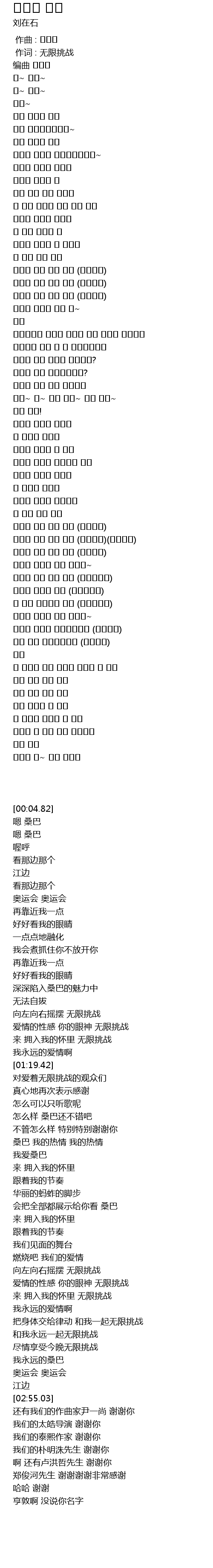 | [00:01.00] | zuò cí : wú xiàn tiǎo zhàn |