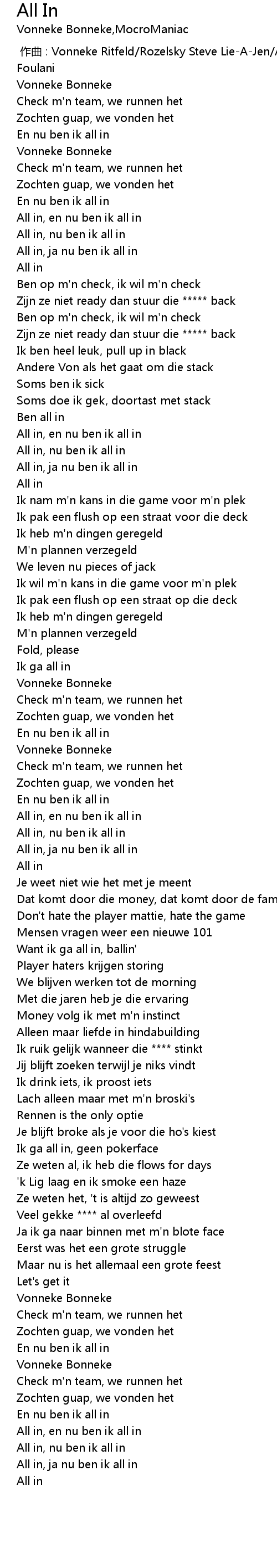 | [02:07.83] | Ik ga all in, geen pokerface |