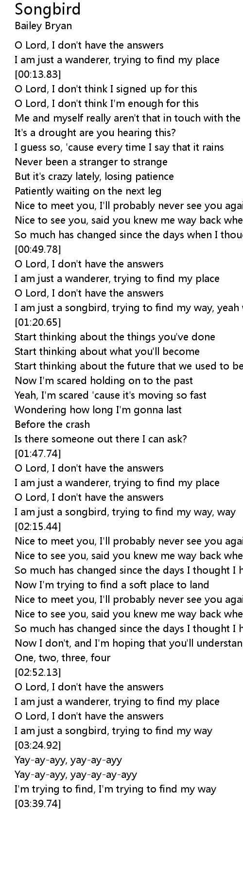 I am just a songbird, trying to find my way, way |