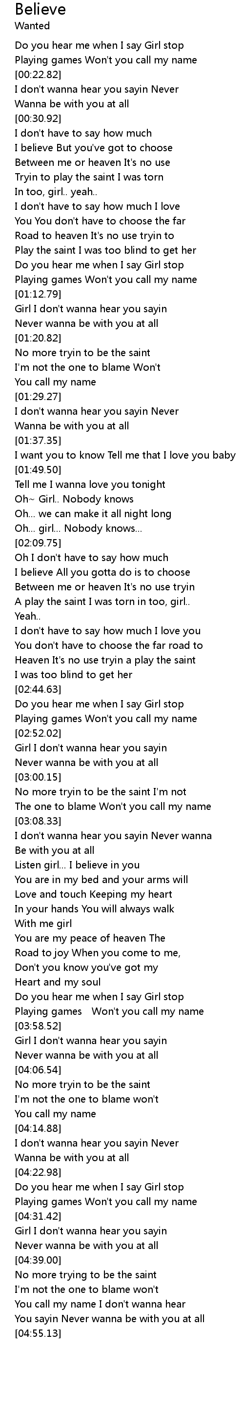 | [03:54.60] | Playing games Won' t you call my name |