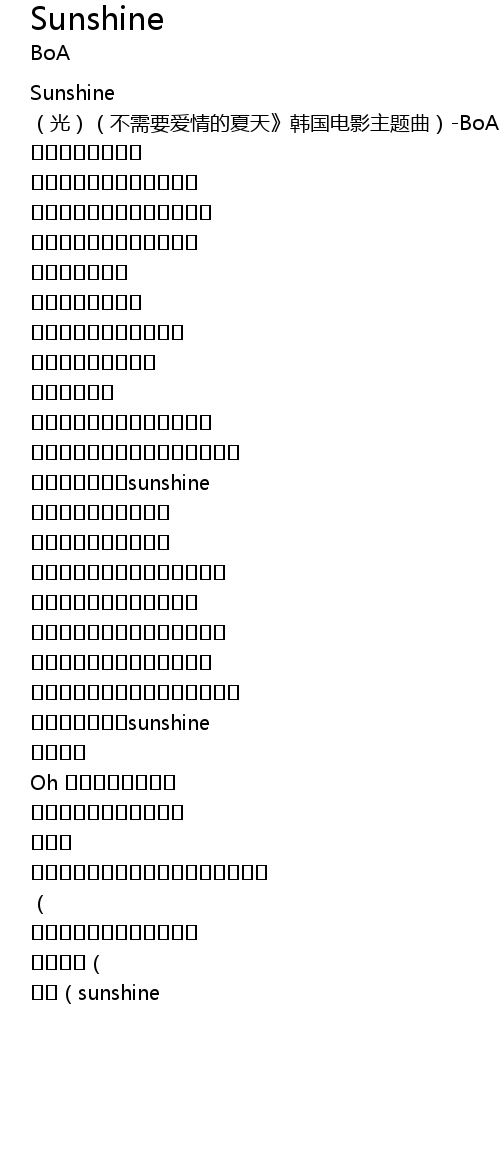 | [00:00.00] | Sunshine (光)(不需要爱情的夏天》韩国电影主题曲)-BoA (儿) |