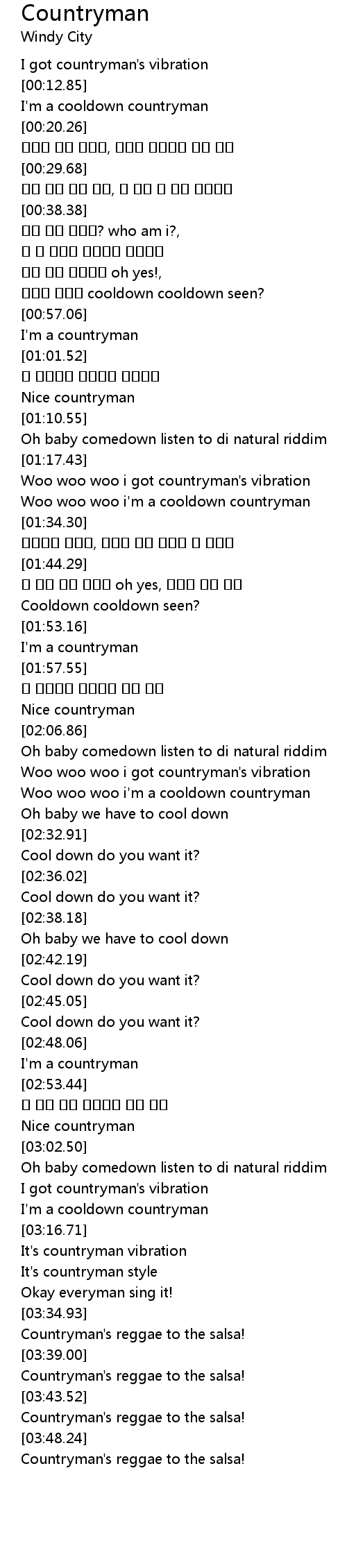 | [02:14.31] | Woo woo woo i got countryman' s vibration |