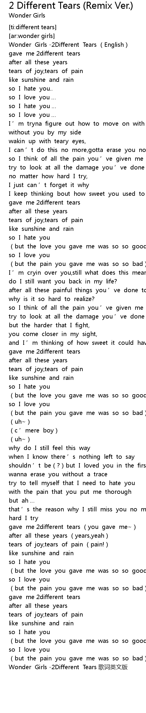 | [02:48.980] | Wonder Girls -2Different Tears 歌词英文版 |