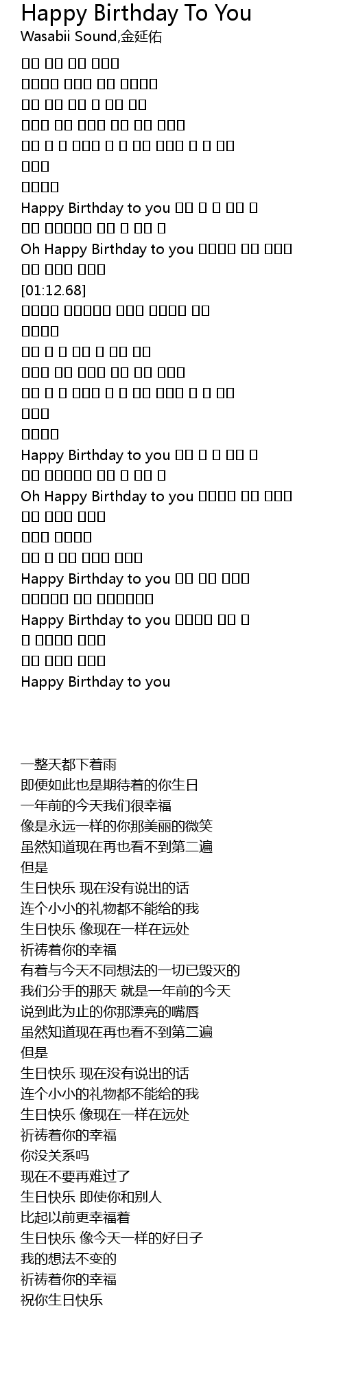 | [02:51.19] | Happy Birthday to you 오늘처럼 좋은 날 |