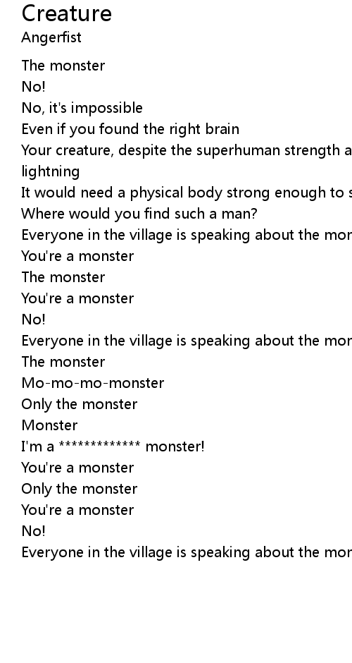 | [00:36.60] | Your creature, despite the superhuman strength and juice by the lightning |