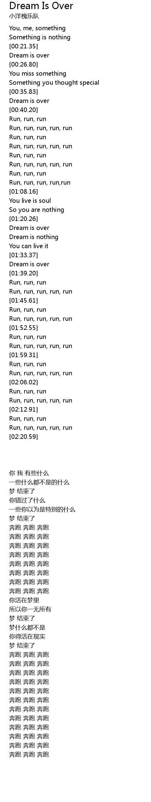 | [01:35.25] | Dream is over |