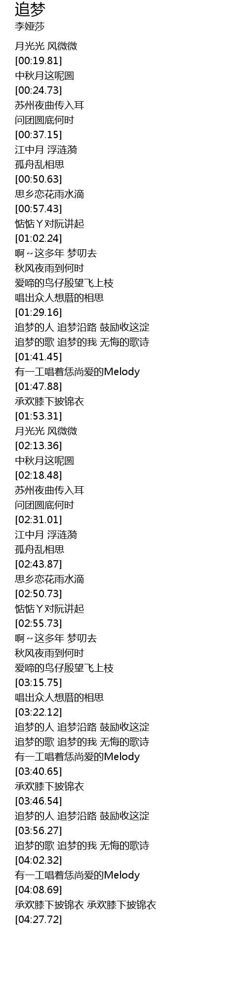 | [03:56.78] | 追梦的歌 追梦的我 无悔的歌诗 |