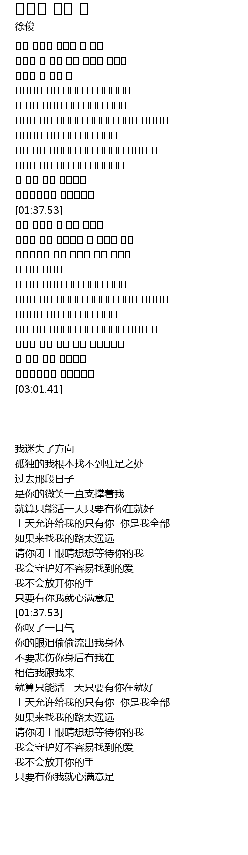 | [00:45.43] | 단 하룰 살아도 너만 있으면 된다고 |