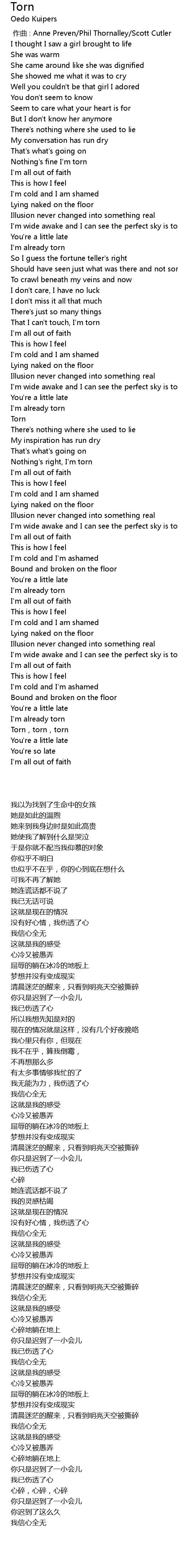 | [02:03.07] | I' m wide awake and I can see the perfect sky is torn |