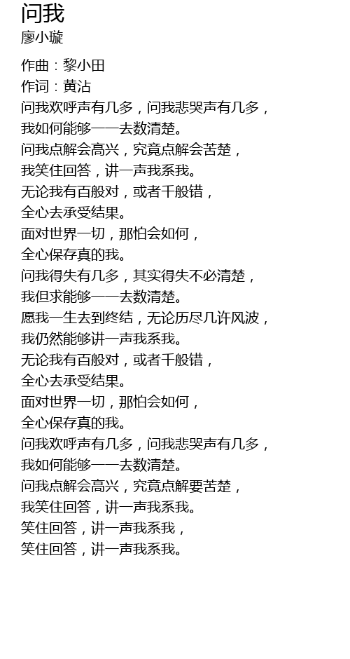 | 问我欢呼声有几多,问我悲哭声有几多, | |