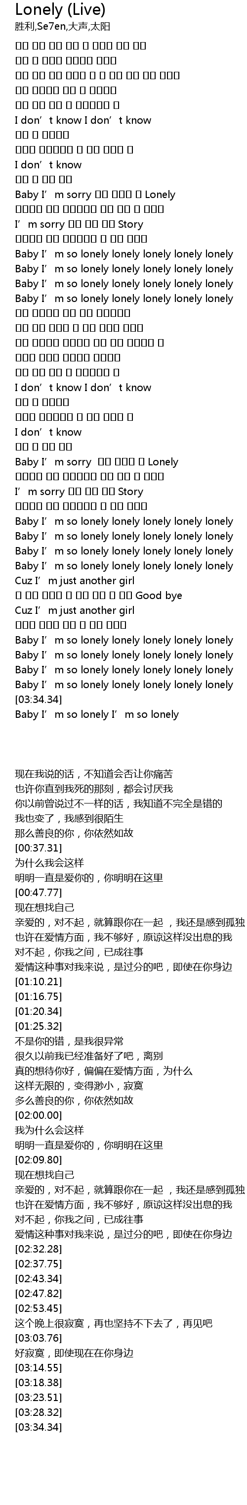 | [01:20.34] | Baby I' m so lonely lonely lonely lonely lonely |