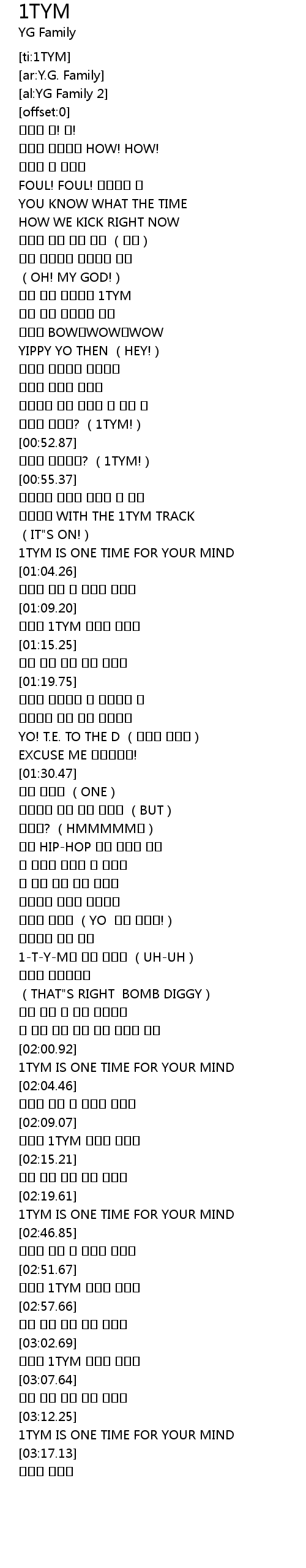 | [02:01.52] | 1TYM IS ONE TIME FOR YOUR MIND |