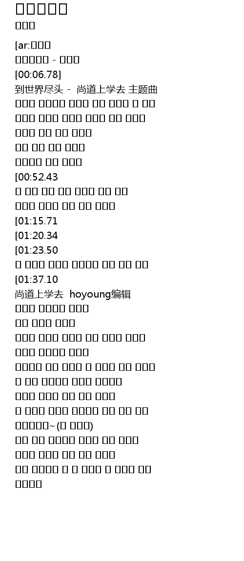 | [00:10.54] | 到世界尽头 - 尚道上学去 主题曲 |
