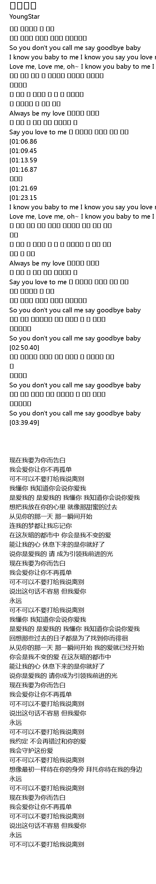 | [00:09.17] | So you don' t you call me say goodbye baby |