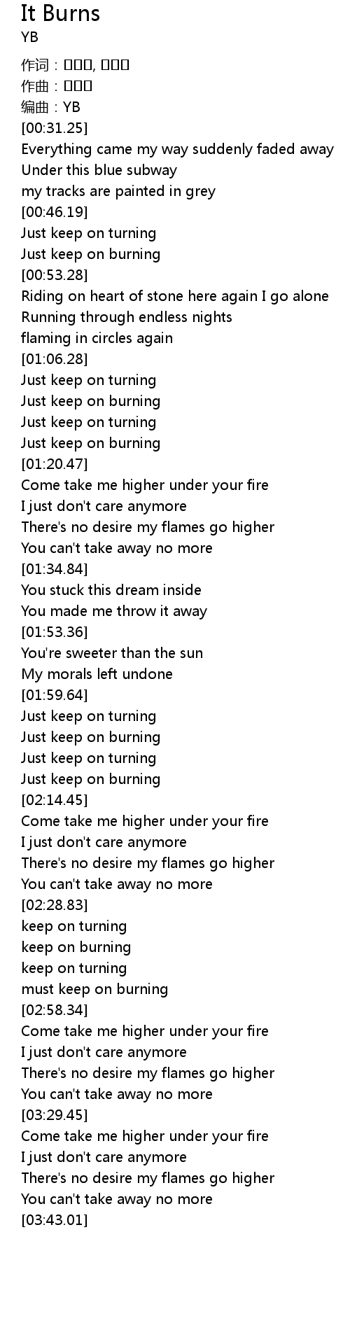| [02:11.24] | Just keep on burning |
