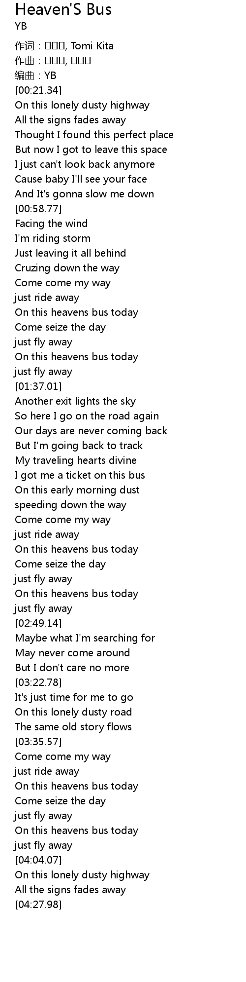 | [03:59.37] | On this heavens bus today |