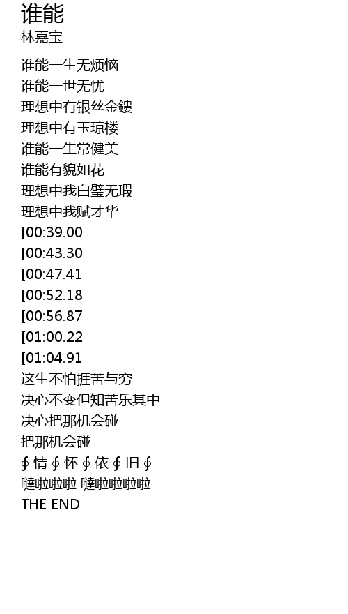 | [00:04.49] | 谁能一世无忧 |