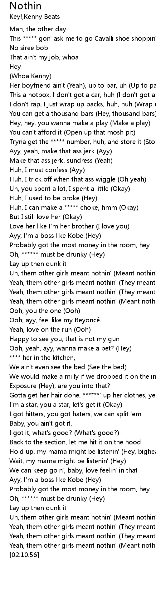 | [02:04.77] | Yeah, them other girls meant nothin' (They meant nothin') |