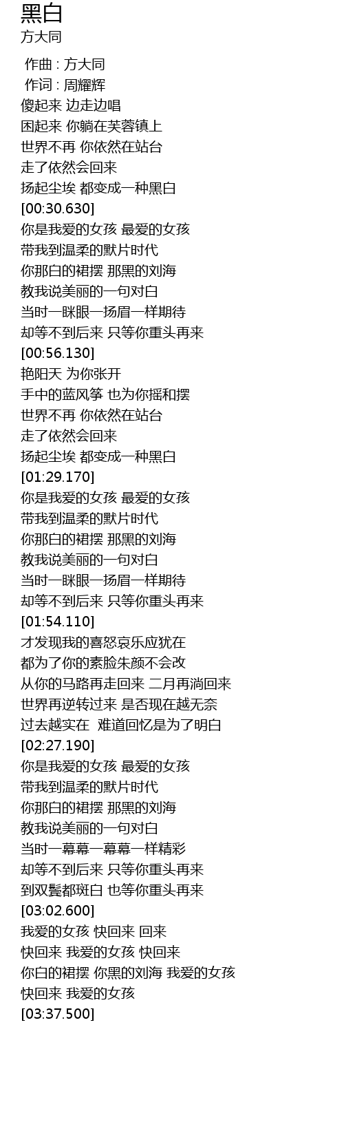 | [00:00.00] | 作曲 : 方大同 |