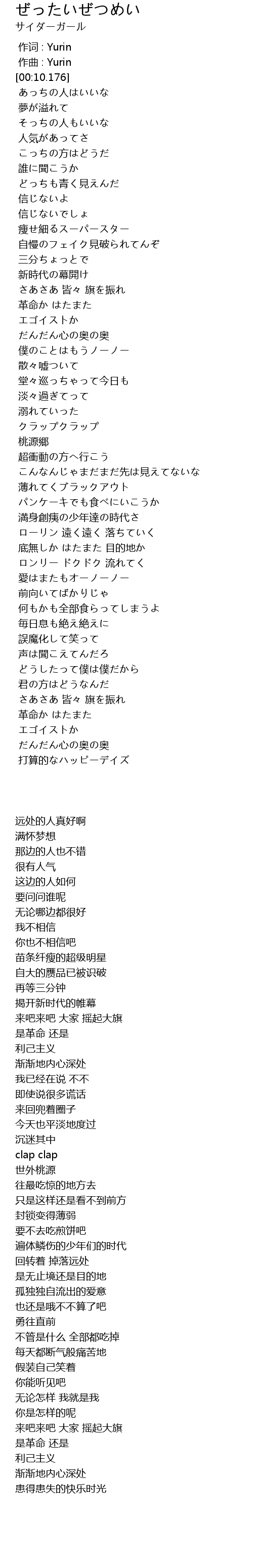 | [00:00.000] | zuò cí : Yurin |