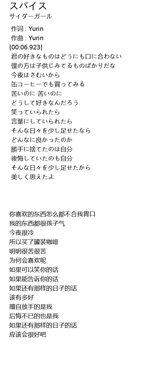 作词 : Yurin |