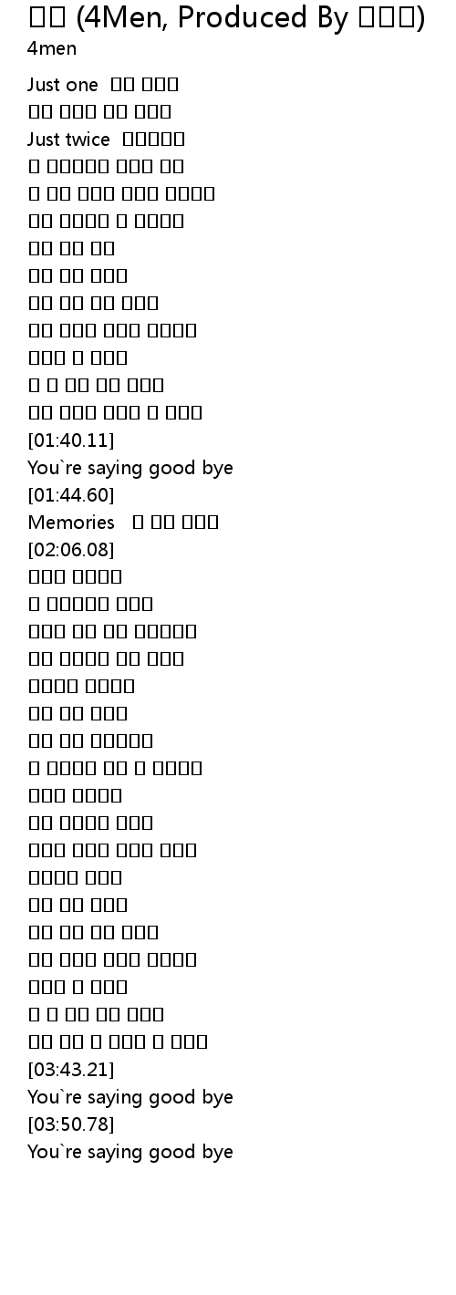 | [01:59.02] | Memories 참 이쁜 숨소리 |