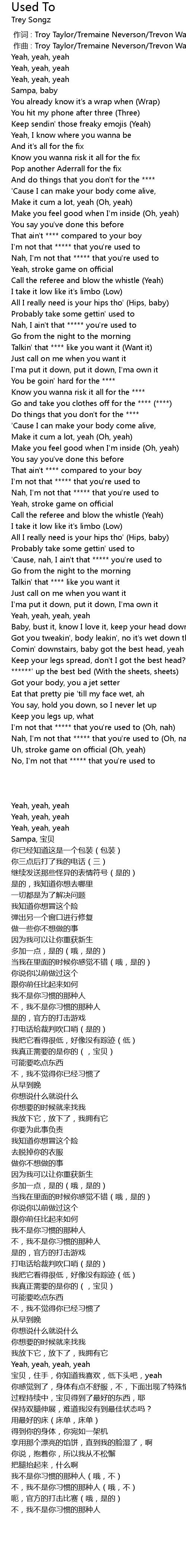 | [02:39.79] | Nah, I'm not that ***** that you're used to (Oh, nah) |