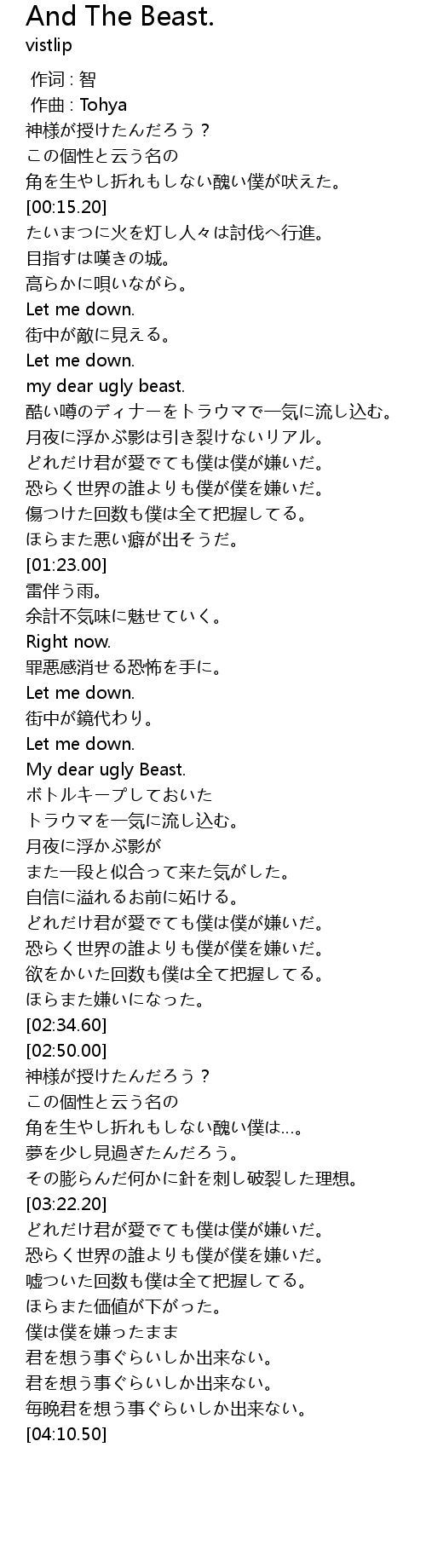 | [03:04.00] | 角を生やし折れもしない醜い僕は…。 |