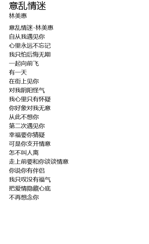 | [00:00.263] | 意乱情迷-林美惠 |