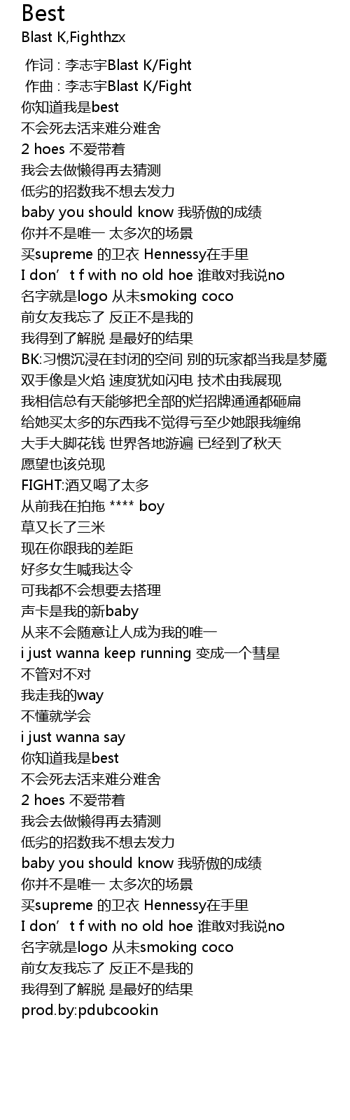 | [01:59.677] | nǐ zhī dào wǒ shì best |