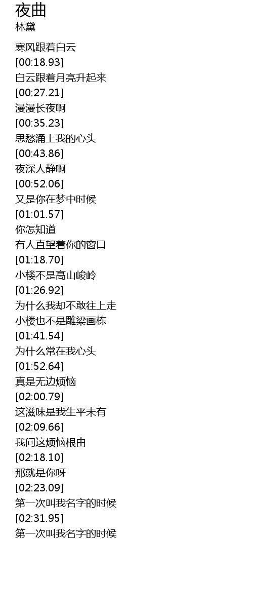 | [00:45.33] | 夜深人静啊 |