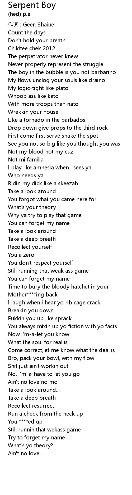 | Song | Serpent Boy |