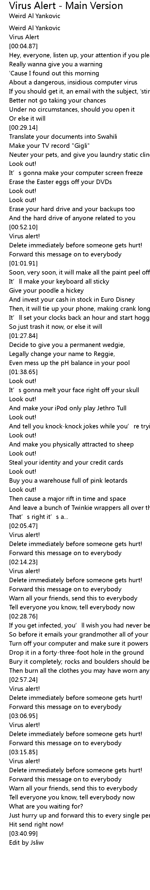 | [03:00.07] | Delete immediately before someone gets hurt! |