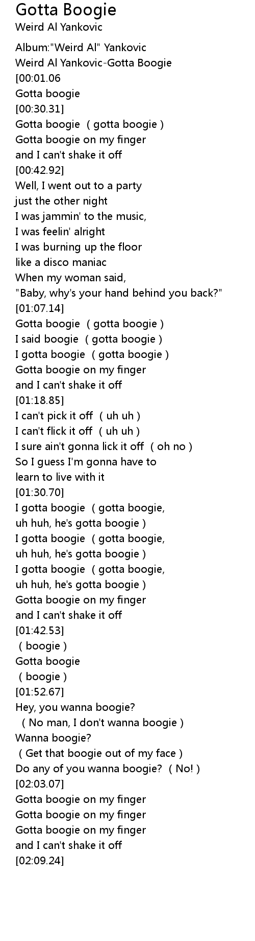 | [00:01.93] | Weird Al YankovicGotta Boogie |